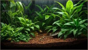 Your substrate choice shapes both humidity regulation and burrowing behavior. Aspen alternatives like coconut fiber or cypress mulch excel at maintaining 65-75% humidity, while aspen shavings work best under 60%. Bioactive benefits emerge when using naturalistic soil mixes with cleanup crews.