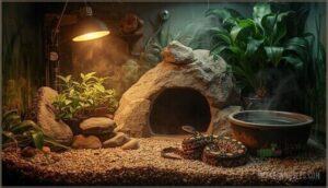 The devil’s in the details for corn snake cage design ideas—overlook humidity zones or hide placement, and your snake pays the price. Your layout choices directly shape feeding confidence, shedding success, and stress levels.